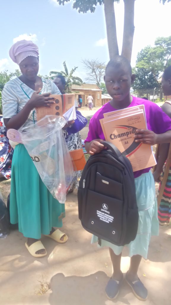 With Funding from the Girls First Fund we purchased and handed over scholarstic materials to 55 leaners with disabilities at Buyiga Island and 15 in Mpigi Town Council, Mpigi district. The activity was intended to address the increasing number of school drop outs and teenage pregnancies in the district.